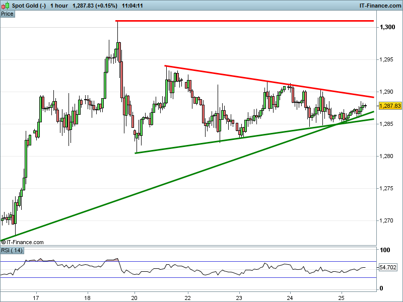 Gold continues to narrow between $1286-1289 ahead of this afternoon’s key speeches.