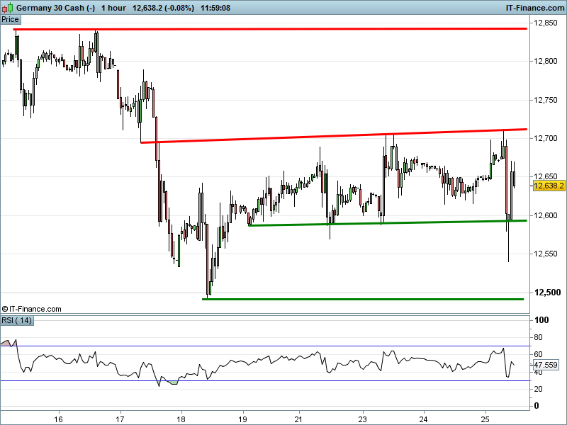 The DAX 30 has also staged a recovery from 12600 support, however is once again on the backfoot. All the way back to support?