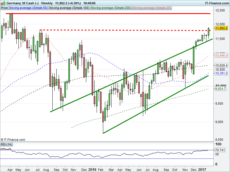 The DAX 30 is holding just below yesterday’s fresh 20-month high of 11890.