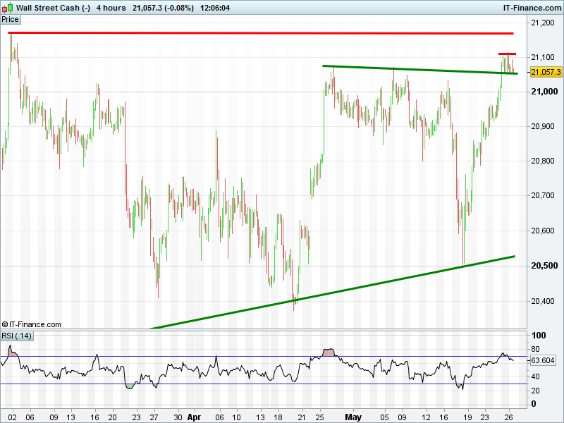 The UK Index 100 has broken above falling highs at 7520 to re-test 7530. The DAX 30 is testing 12550 for support again. Dow Jones Futures have paused 21050-21100 amid a strong uptrend. Gold is making a bullish test of recent resistance. Breakout?