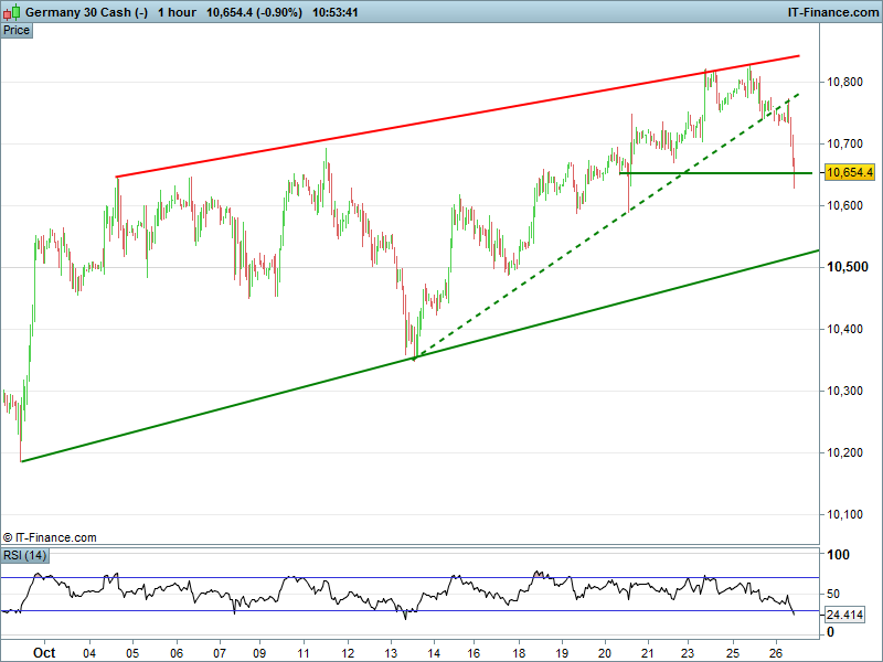 The Dax 30 was reaching 2016 highs this time yesterday, however is now testing support at 10650. Can the index recover losses this afternoon?