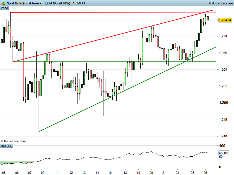 Gold is maintaining a breakout from a week long $1260-$1268 trading channel, is a further breakout from $1277 resistance possible?