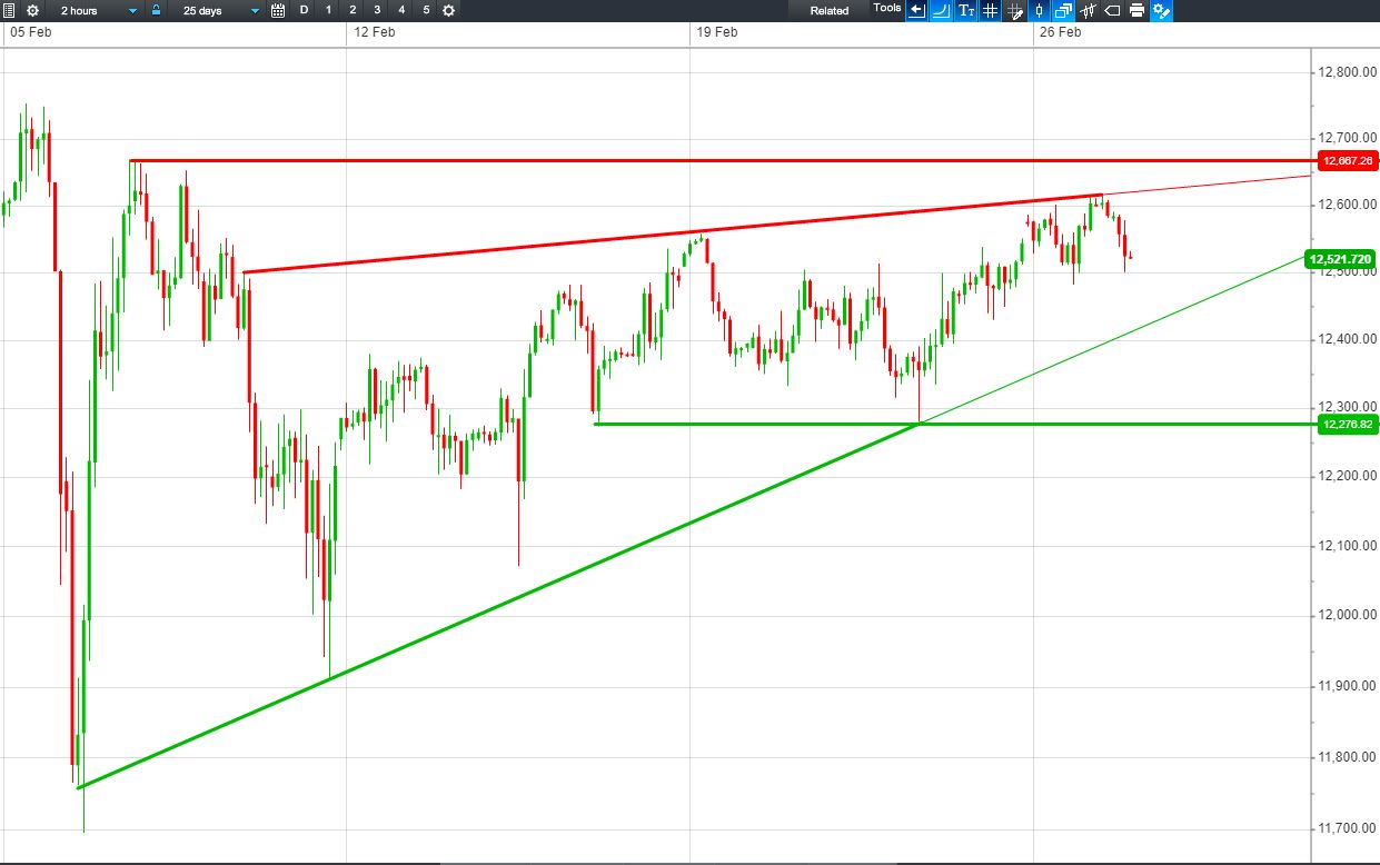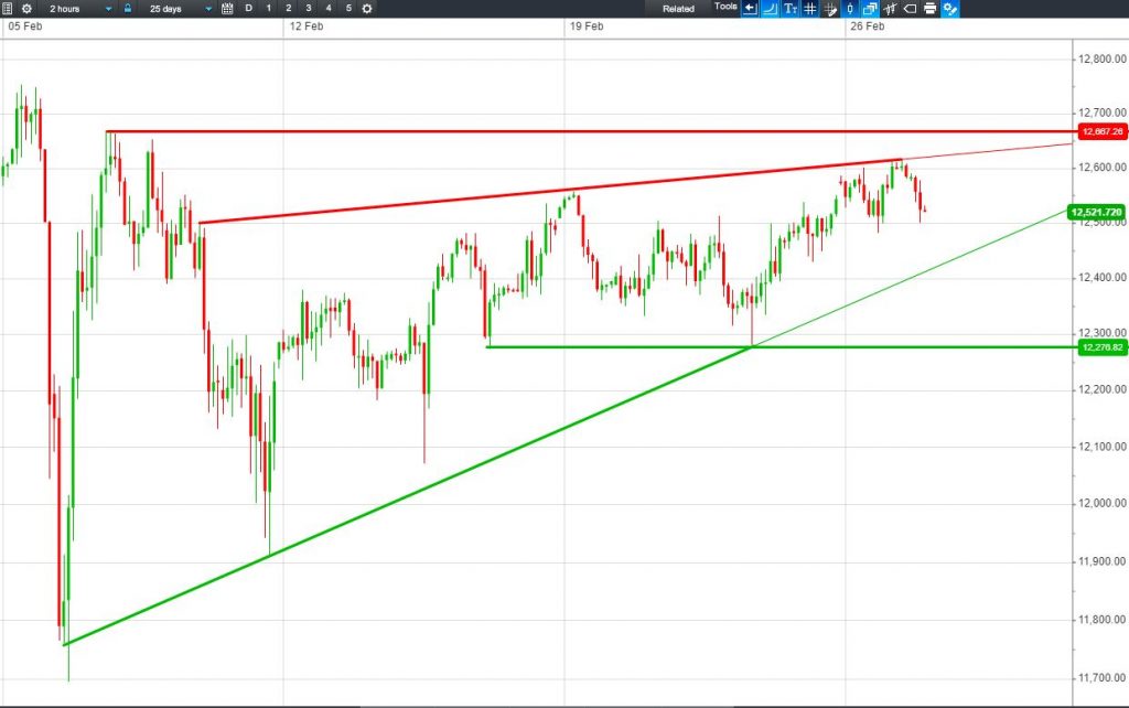 The DAX 30 is retreating from 12600 resistance but remains in uptrend.