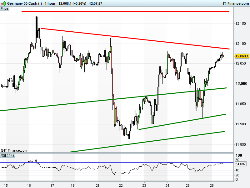 The DAX 30 bounce has lost momentum at 12080. Back towards 12000?