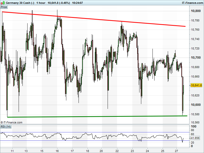 The DAX 30 has bounced from 10580 lows to remain within its sideways channel.