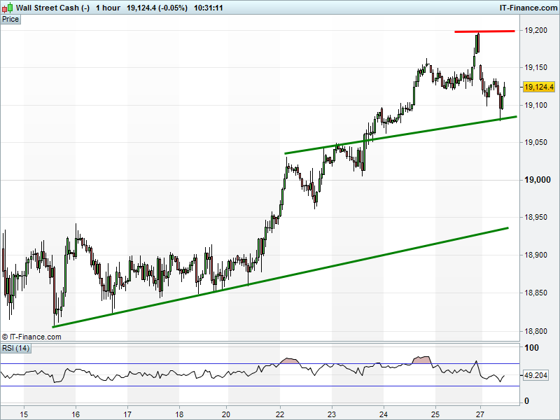 The Dow Jones Futures have eased back from all-time highs, but already found support at 19100 to keep the post-Election uptrend alive.