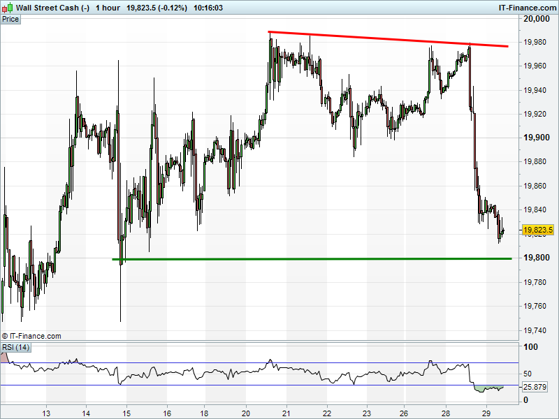 Dow Jones Futures are trading around mid-Dec lows of 19800. Note hour RSI suggests the index is oversold. Bounce due?