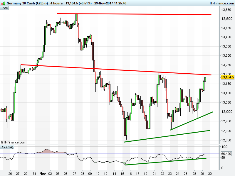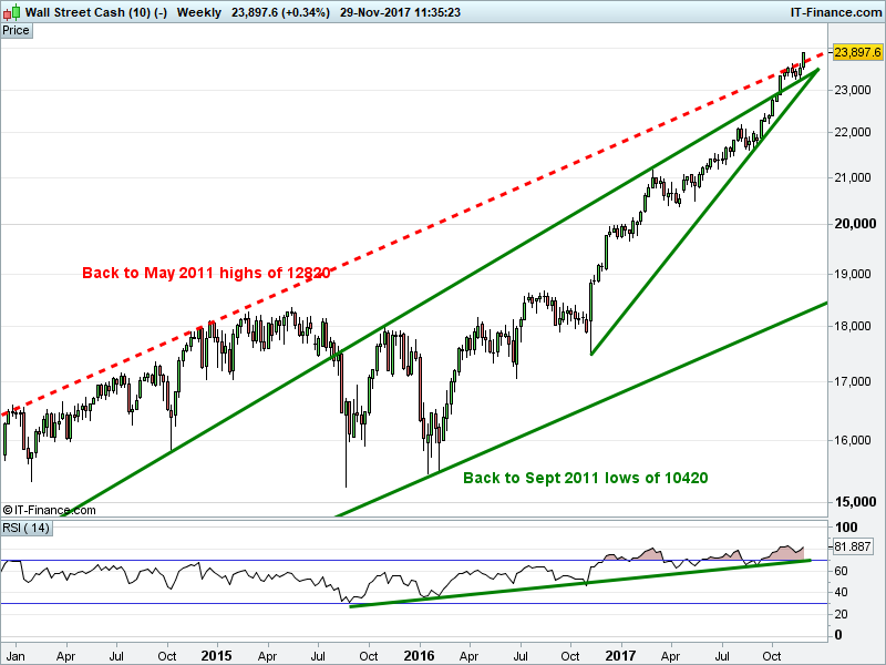 The UK Index 100 has found support at 7413. The DAX 30 has found resistance at 13200. Dow Jones Futures are trading fresh record highs. Gold continues to have difficulty cracking resistance at $1295, the strong USD proving a hindrance.