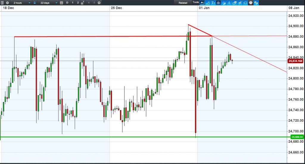 Dow Jones Futures are trying to push back towards yesterday’s 24880 highs