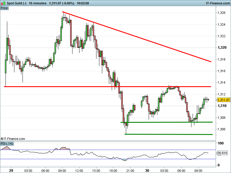 Gold has paused having bounced from $1307 support. Will it return to $1313.5 overnight highs or back to retreat back to support?