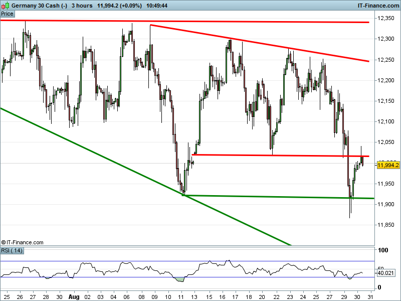 The DAX 30 has failed to maintain a breakout above 12010 support turned resistance, falling back below 12000. Will it pare yesterday afternoon’s gains?