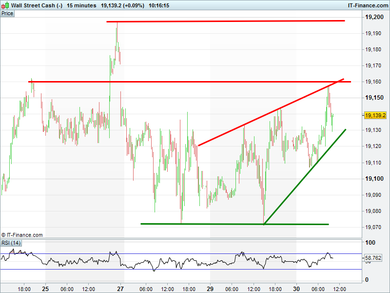 The Dow Jones Futures are also showing appetite to go higher, in a rising channel 19130-19160. Bounce off channel floor?