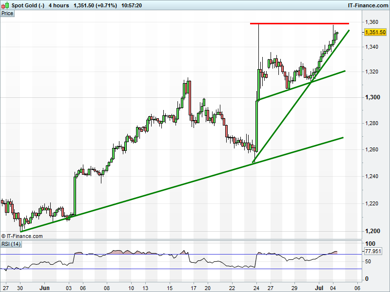Gold has made another test of recent $1359 highs, but can it engineer a breakout? Is safe haven demand strong enough? Note that overbought RSI