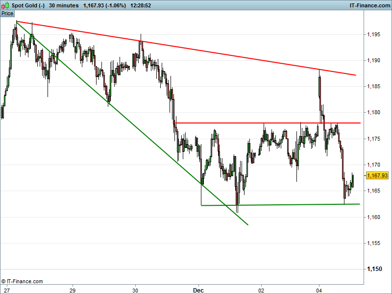 Gold has recovered from lows of $1162 however remains in the bottom half of its 3-day trading channel.