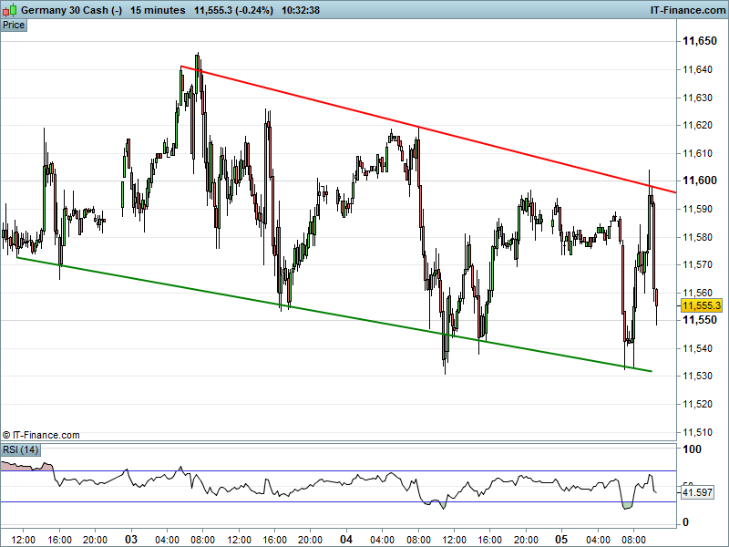 The DAX 30 is pulling off slightly after an early morning rally to 11595 highs despite positive European macro data. Another bounce at 11540?
