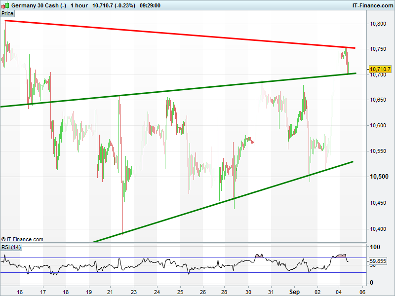 The UK 100 may have broken out from a falling channel but it is struggling to hold its gains 6890. Even with a stonking PMI services print for August.