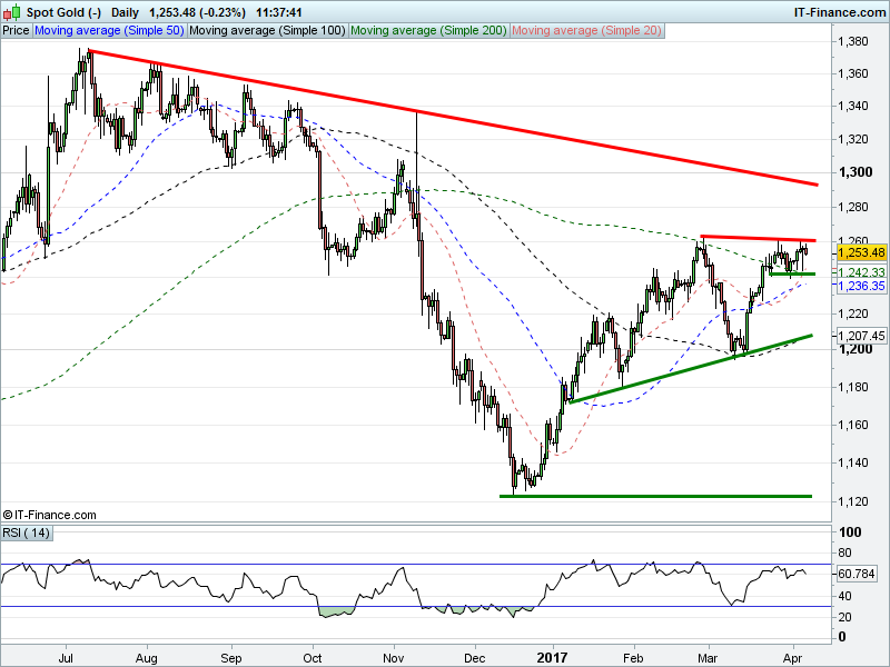 Gold is consolidating $1240-1260, holding above its 200-day moving average at $1242.