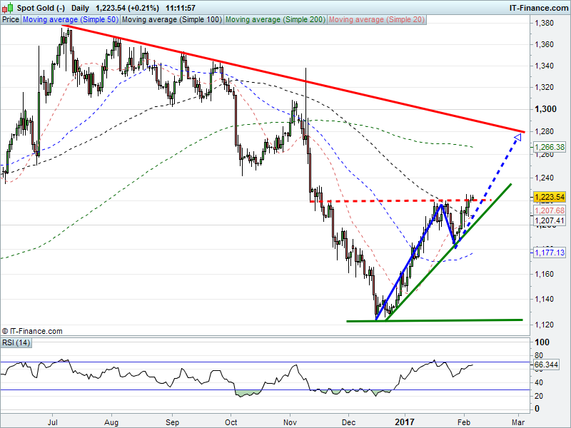 Gold has added to Friday’s bounce to break back above $1220 and form support at $1222. Could still be on for  a bullish flag back to $1280
