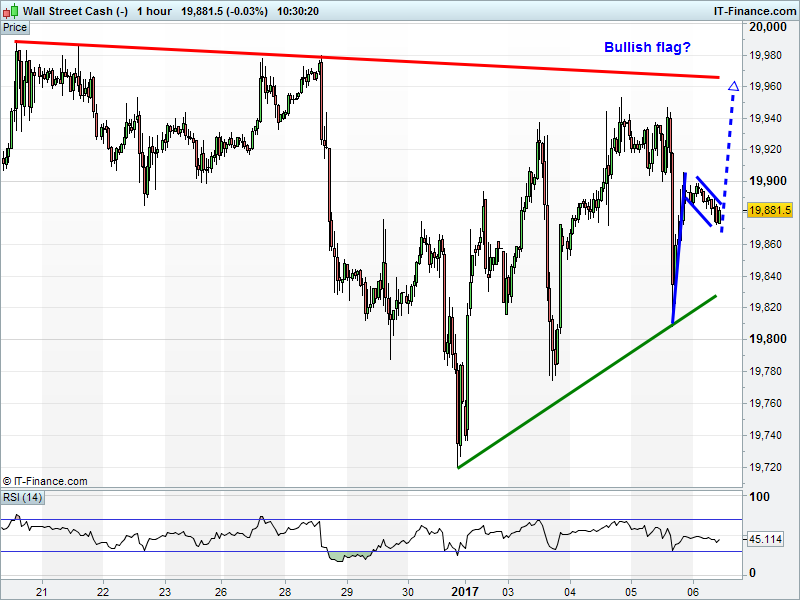 Dow Jones Futures are still easing back from 19900, but could be forming a bullish flag back up towards 20,000