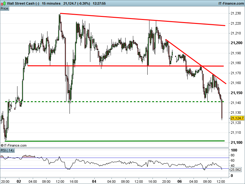 Dow Jones Futures have broken below overnight lows of 21,140.
