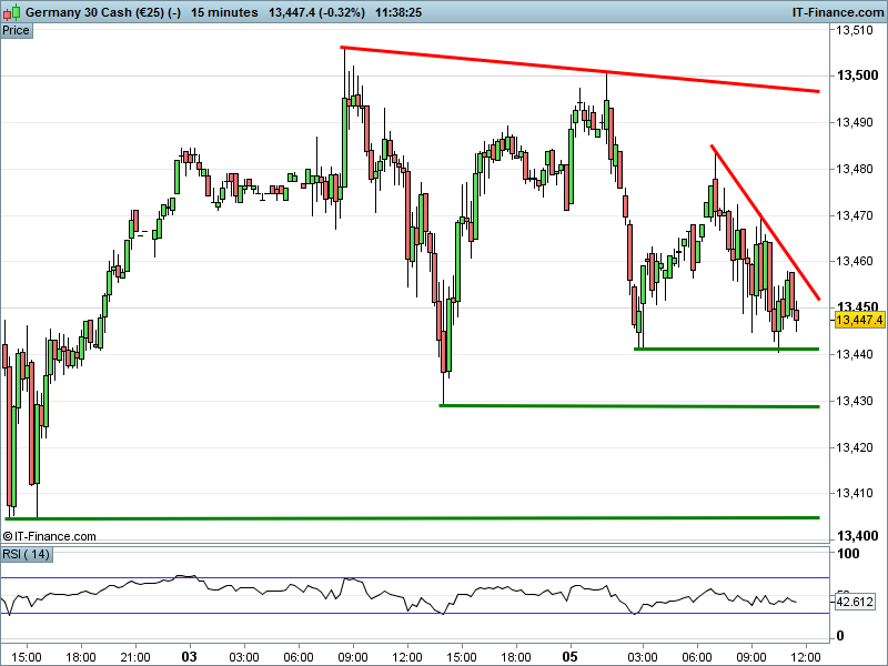 The DAX 30 has retreated from 13506 all-time highs. Bearish triangle pattern?