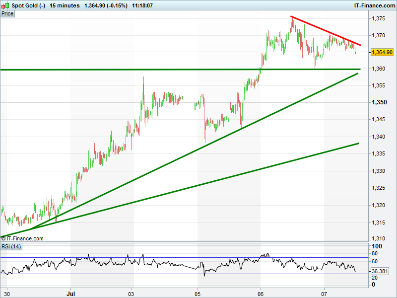 Gold is back sub-$1365 is being hampered by falling resistance since yesterday’s $fresh 2yr highs at $1375. Back to yesterday’s low of $1360?