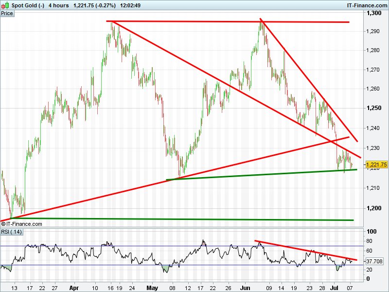 The UK Index 100 has bounced close to a bullish test of falling resistance at 7360. The DAX 30 is holding around December rising support at 12350. Dow Jones Futures have sold back to find support around 21310. Gold remains stuck around $1220 support as a stronger USD, hawkishness and higher yields dampen demand.