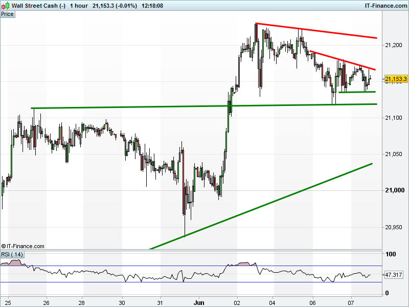 Dow Jones Futures trade a tight 21135-21165 range, under pressure since Friday.
