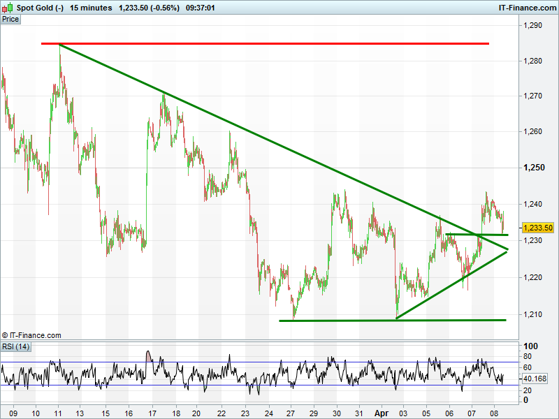 Gold has eased back to test the recent $1230 breakout level for support. This could help push it to fresh April highs it should a weaker USD ensue or market risk appetite take a dive.