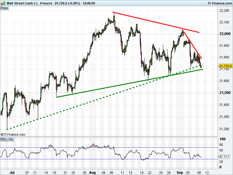 Dow Jones Futures are testing July rising support, but is their more at 21700? Rebound or further downside?