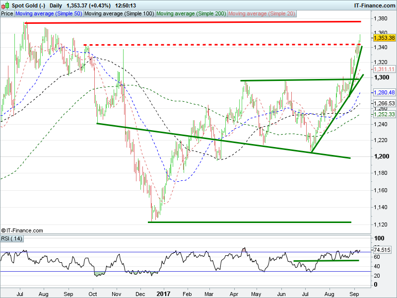 Gold has extended its rally to break back above $1345 and trade 12-month highs.