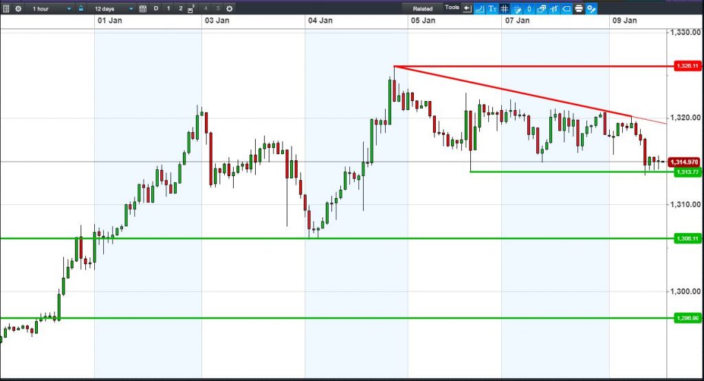 Gold has found support at $1314. Bounce or bearish flag that leads to a breakdown?