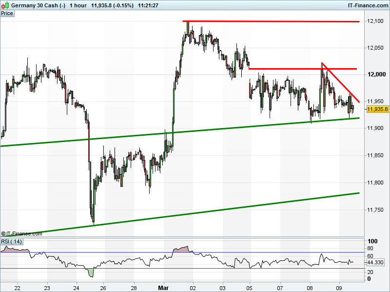 DAX 30 is penned in 11920-50, awaiting a driver for a break higher or lower.
