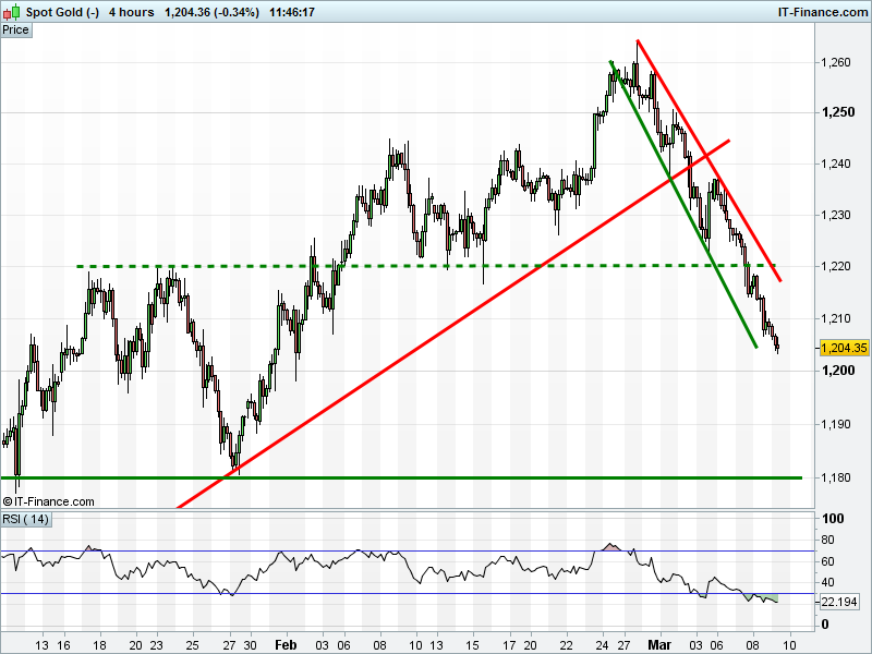 Gold has extended its correction to near $1200 although major support may be lacking until $1180.