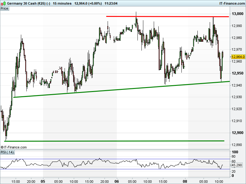 The DAX 30 has bounced from 12945 within touching distance of 13000 record highs