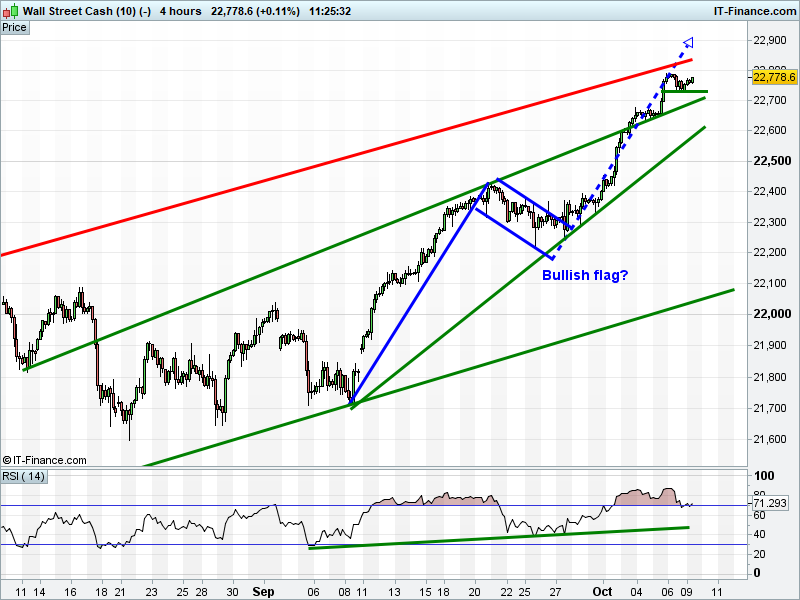 Dow Jones Futures have bounced off 22730 and broken beyond 2-day falling highs, to stay on track for a bullish flag to 22900.
