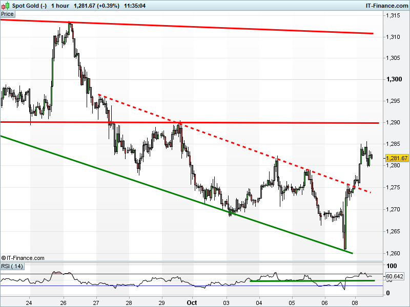 Gold has broken from its downtrend to extend its $1260 bounce.
