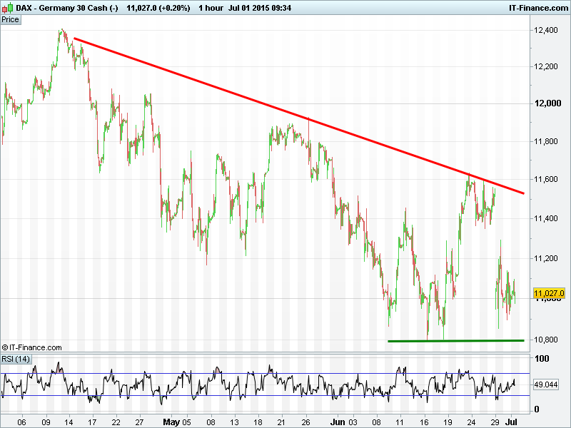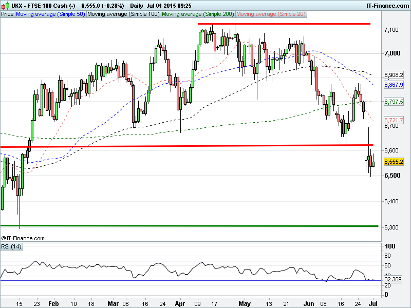 Another UK Index  bounce from fresh overnight lows failed to better 6600. DAX still hanging around 11000. Wall St also bounced off fresh lows, but yet to regain yesterday’s highs 17740. Gold back below $1175, struggling with downtrend from 28 May highs due to USD strength and alternative safehaven demand.
