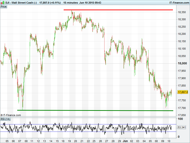 US Dow Jones bounced from early May lows 17700 to regain 17800. Reversal of downtrend?Or must 200-day MA 17648 or Mar/Apr lows 17540 be tested first?
