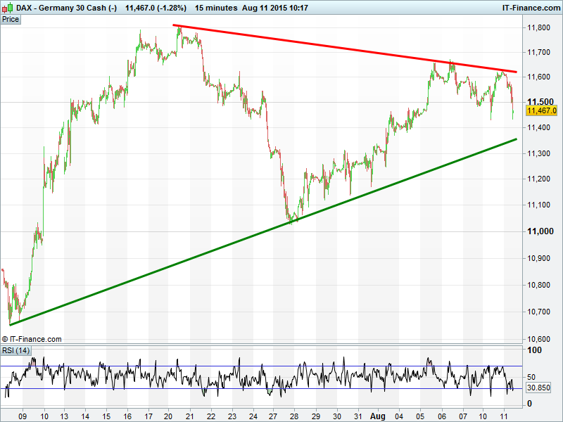 European equities on the back foot this morning in reaction to China’s currency devaluation and despite proximity to a Greek bailout deal. While markets normally welcome any form of China stimulus with open arms, today’s move in the wake of truly awful weekend trade data is being interpreted as admission of growth slowing by even more than those rather questionable official statistics are to have us believe.