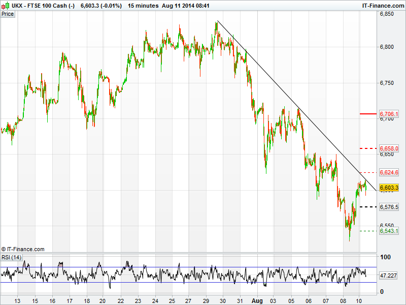 The UK’s UK 100 is off its best levels this morning after finding some resistance from the falling highs seen from the end of July. Short term struggles still persist with resistance seen this morning at 6615, with potential of a fall back towards Fridays lows of 6527. A lack of company earnings couples with a very quiet day macro wise could seen the UK 100 in a bit bit of limbo today, unless geo-political tensions change for the better or worse.