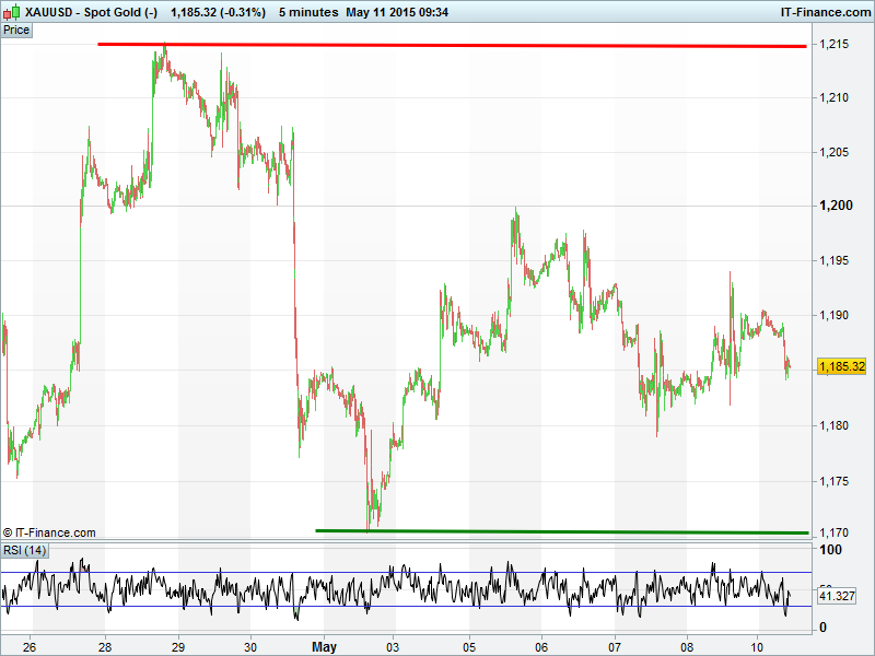 Gold’s remains in its sideways trend since mid-March. Progress hindered by USD recovery (Friday’s US jobs report still suggests Sept rate rise poss) and Chinese stimulus offsetting Greek debt renegotiation worries and global growth concerns.
