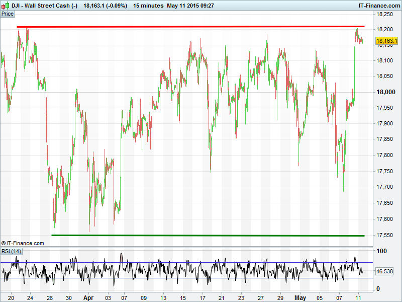 The US Dow Jones has found resistance at the highs of late March which could keep the index a sideways range although we note the daily RSI is still neutral with shallow rising lows. Now that 18000 has been overcome, Bulls eyeing early March all-time highs 18284.