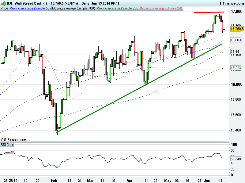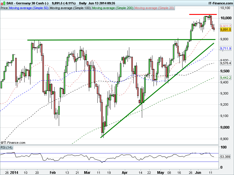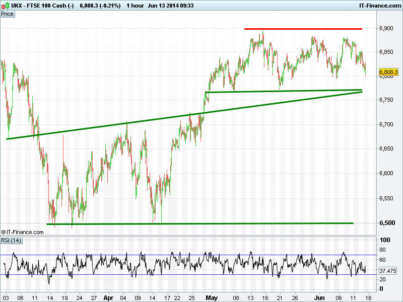 The retreat continues with Iraq now on everybody’s radar, US Retail data failing to inspire and overnight Chinese data offering no assistance. UK hindered by the additional threat of an earlier rate rise and curbs to mortgage lending.