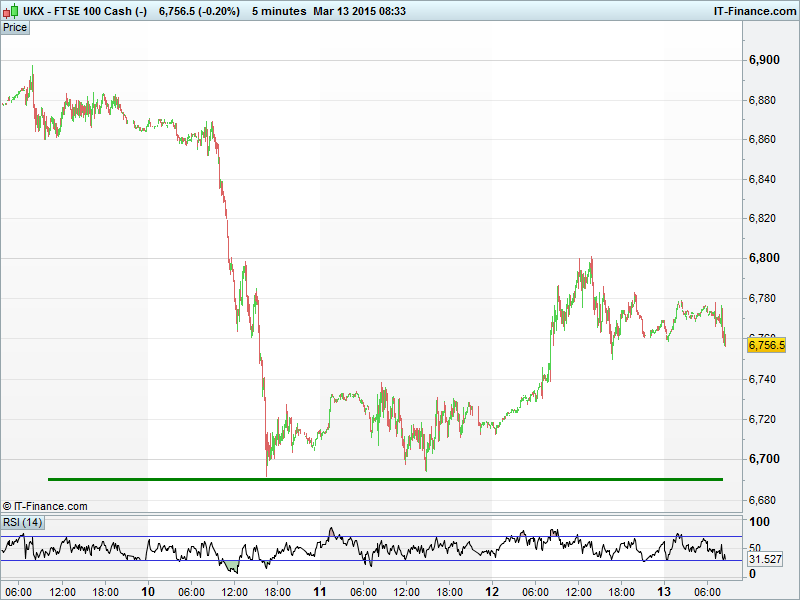 UK 100 hit resistance at 6800 having staged an impressive bounce off support at 6690. Recovery potential upon breakout to the upside.