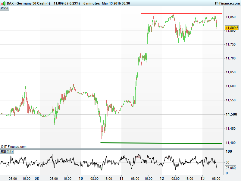 Germany’s DAX is has fallen back from new all time highs made this week on the back of ECB QE. Still in an uptrend and with potential for a range bound few days’ trading to follow as the index shows little sign of heading back south in any big way.