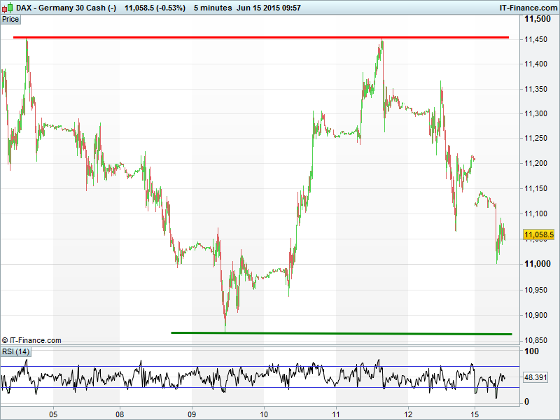 Our major equity markets UK 100 , DAX and DOW are all trading below water this morning as traders react to news of negotiations between Greece and its creditors to release desperately needed bailout funds once again collapsed, wasting yet another weekend and taking Athens a step closer to what markets fear most – default and a potential exit from the single currency Eurozone. Gold sideways as a result of the opposing forces of Greek concerns and a strong USD offset each other ahead of what is seen as a crucial week for Greece and the latest Fed meeting and policy decision on Wednesday.