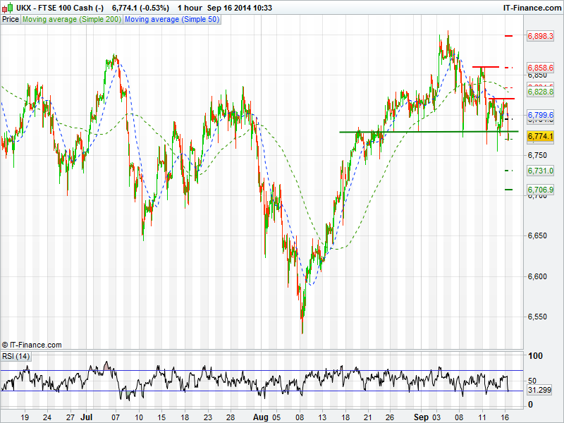 Markets are lower once again this morning as the Scottish Independence vote edges ever closer. This combined with reports of tensions again rising in Ukraine after a day of shelling at Donetsk airport yesterday. The US have also stepped up their airstrikes on Islamic State militants in Iraq and Syria. Macro wise all eyes will be firmly on the result of tomorrows FOMC statement to give us an indication on the likelihood of an earlier than anticipated rate rise.
