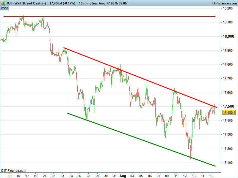 US Dow Jones still testing those falling highs around 17450. Still doing its best to avoid another leg to the downside after encouraging data releases.
