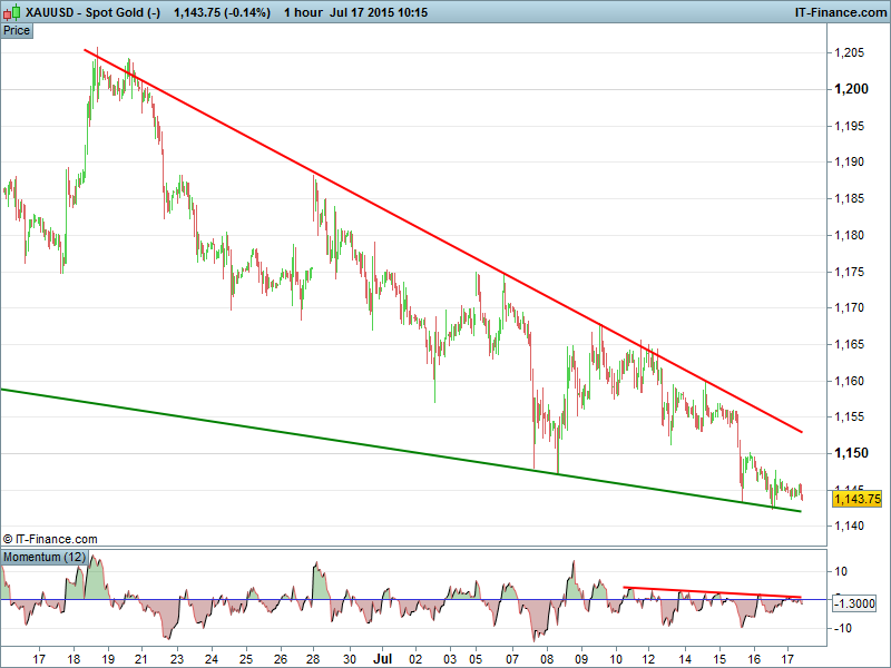 UK 100 still holding just below 6800, DAX30 back at 11700 and the lower bound of a 24hr 100pt range and Dow Jones in consolidationback below 18100. Gold still testing 2015 lows.
